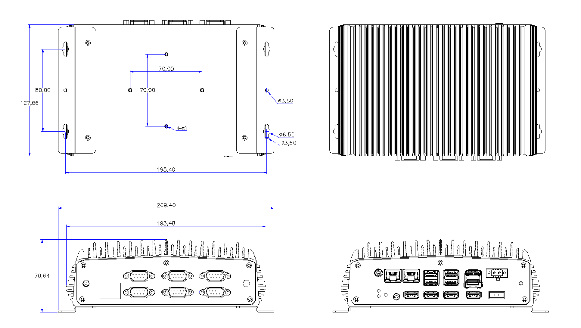 6*DB9 COM,其中COM1和COM2(默認RS232,換物料可選RS485&RS422) |